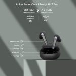ایربادز liberty air 2 pro محصولی جدید از کمپانی بزرگ انکر است که کیفیت و طراحی ارگونومیک منحصر به فردی دارد. نویز کنسلینگ این ایر بادز یکی از بارزترین ویژگیهای این محصول به شمار میاد، این محصول دارای ۶ میکروفون نویز کنسلینگ است که در تماسهای تلفنی به شما صدایی کاملا شفاف و با کیفیت میدهد طوری که انگار مکالمه رو در رو دارید. یکی دیگر از قابلیتهای این ایربادز، تکنولوژی HearID است که با استفاده از اپلیکیشن Soundcore میتوانید تنظیمات صدا شخصی خودتان را اعمال کنید. کیس نگهدارنده Liberty air pro 2 26 ساعت و هدفونهایش ۷ ساعت قابلیت نگهداری شارژ را دارند؛ کیس نگهدارنده تکنولوژی fast charge دارد که توسط کابل USB C و شارژر بی سیم شارژ میشود. شما با تنها ۱۵ دقیقه شارژ کردن میتوانید ۳ ساعت شارژ ذخیره کنید. این ایر بادز به نحوی طراحی شده که از گوش شما نمیافتد و دارای ۹ سری سیلیکونی نرم در ابعاد مختلف است که به شما امکان استفاده از سری سایز مناسب گوشتان را میدهد. این محصول توسط ۱۰ موزیسین بزرگ که برنده جایزه جهانی گرمی (GRAMMY) شدهاند بررسی و تایید شده است.